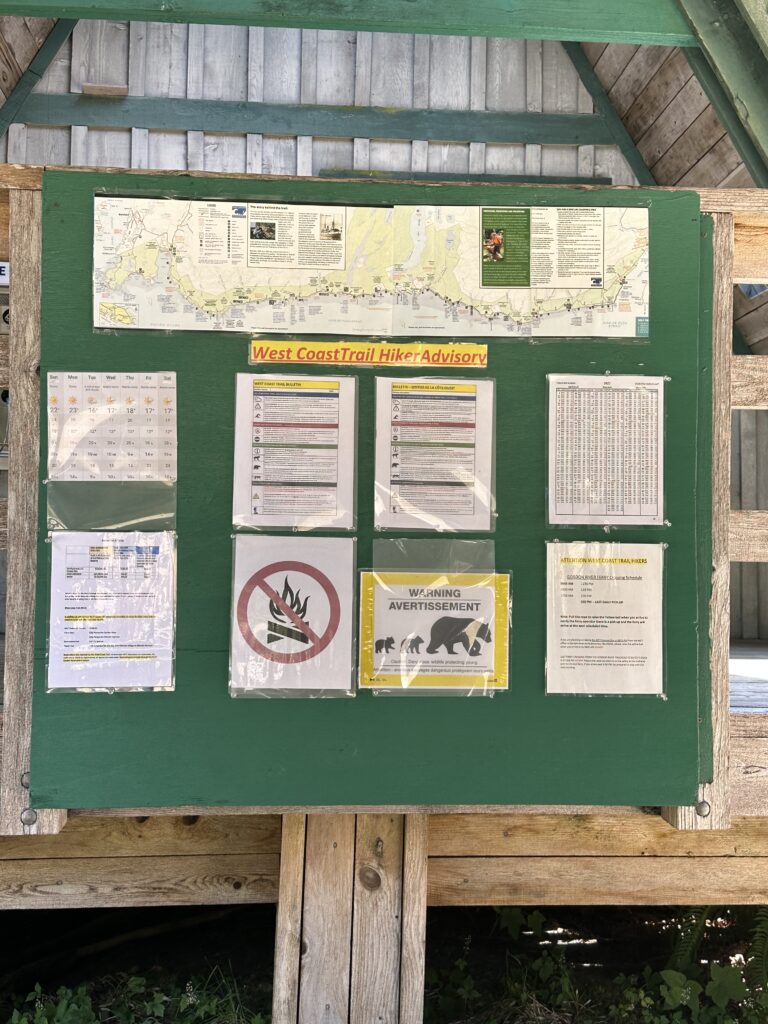 You can start/stop at any of these trailheads on the West Coast Trail. We started at Pachena Bay, which is the North starting point and the “proper” way. I only say it is the proper way because the kilometer marking points go up and not go down.